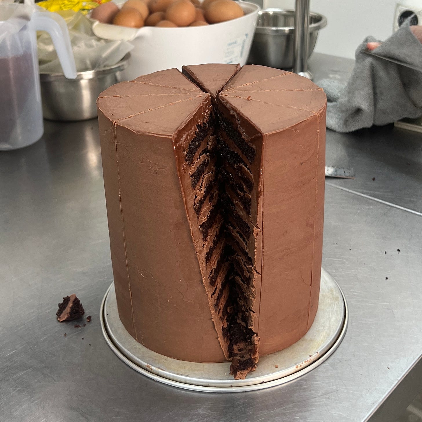 Repeat until you reach 10 layers of cake and 10 layers of ganache.